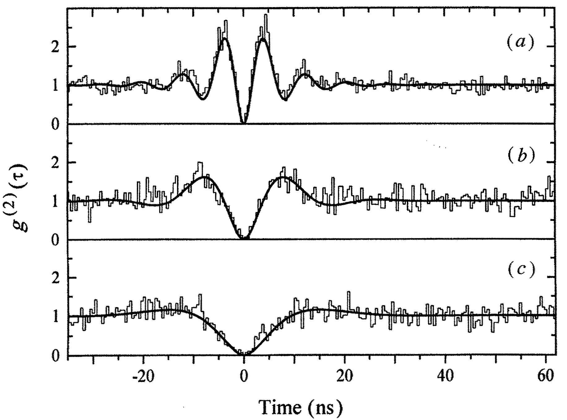 Given the emission spectrum, we may ask if the emitted light is classical or quantum. The answer can be found in the photon statistics of the resonance fluorescence, which can be probed by measuring the second‑order correlation function